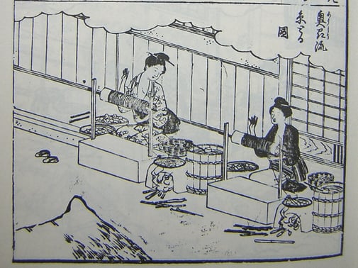 This is a print of "YOSAN-HIROK (養蚕秘録)". This book was published in 1803. This is the sericulture textbook to represent the Edo era.